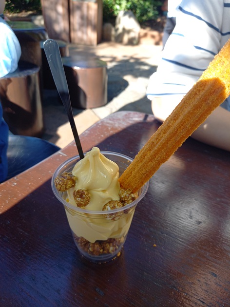 パンプキンチュロス、パンプキンソフトクリーム、キャラメルポップコーンが入っためちゃめちゃ美味しいサンデーでした😍