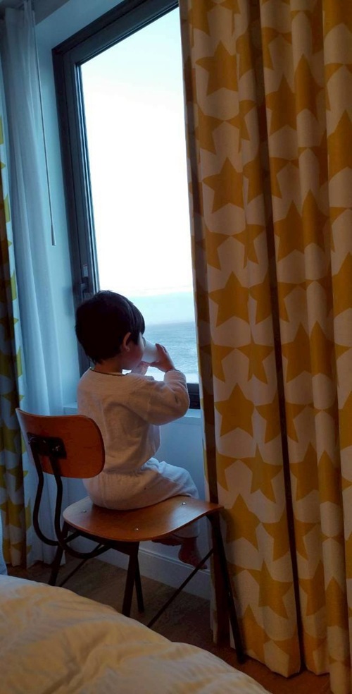 カーテンを開けて海を眺めながらお水を一杯🥂
