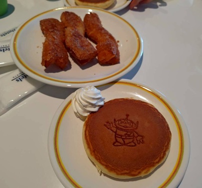 また、朝にしかないエイリアンの絵が描いてあるパンケーキがあり、可愛くてふわふわで優しい甘さ😋
