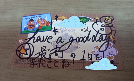 と話しながら、息子の名前を聞き、名前を入れてカードに「また来てね」とメッセージを書いて渡してくれました!🙌